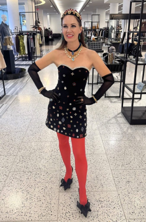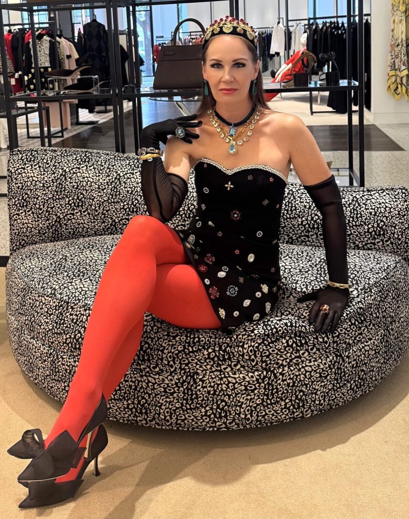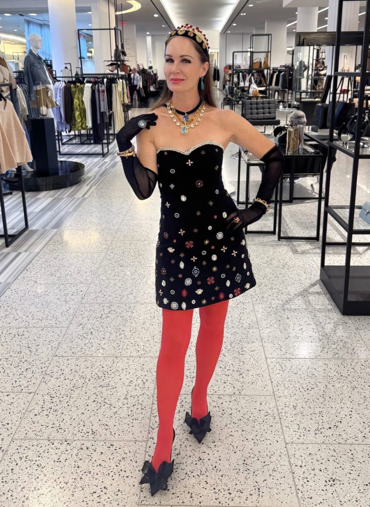 Dress by Alice & Olivia/Shoes by Jimmy Choo/ All jewelry by Gretchen Ventura Jewelry ~ all from Tootsies/ Contact Fady Armanious, Rochelle Turner